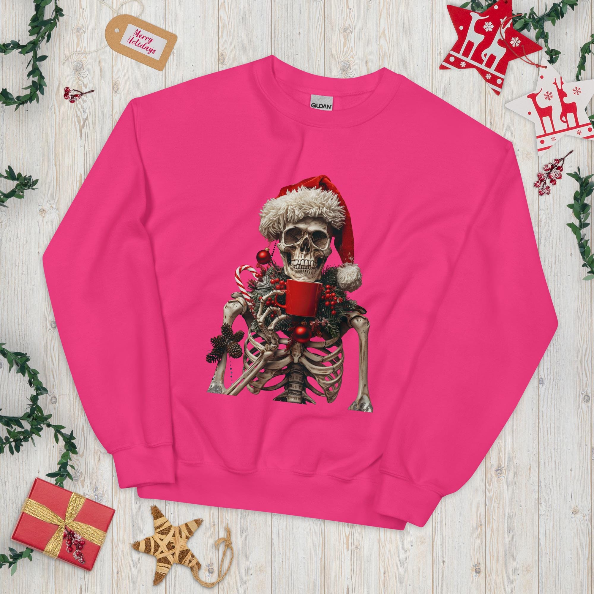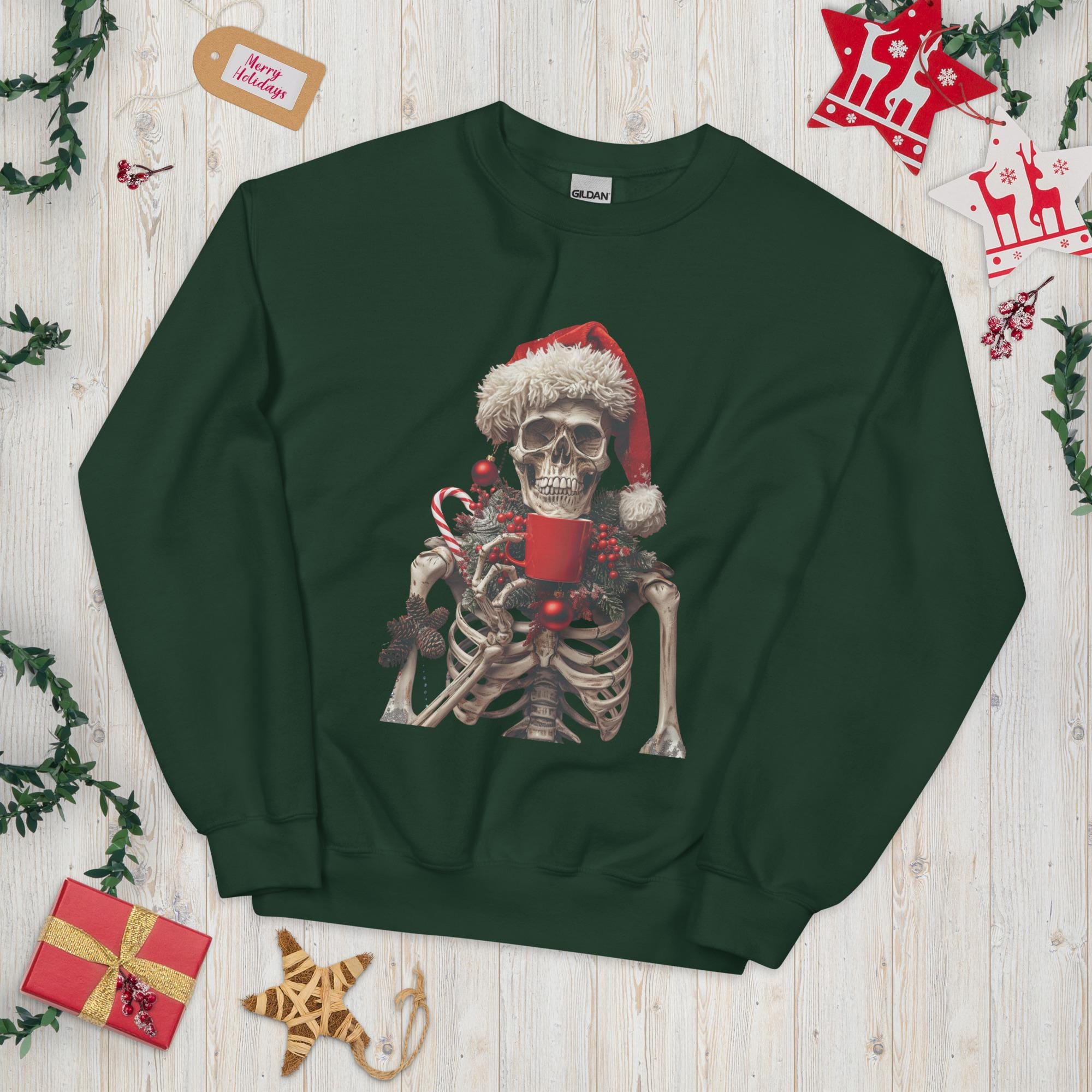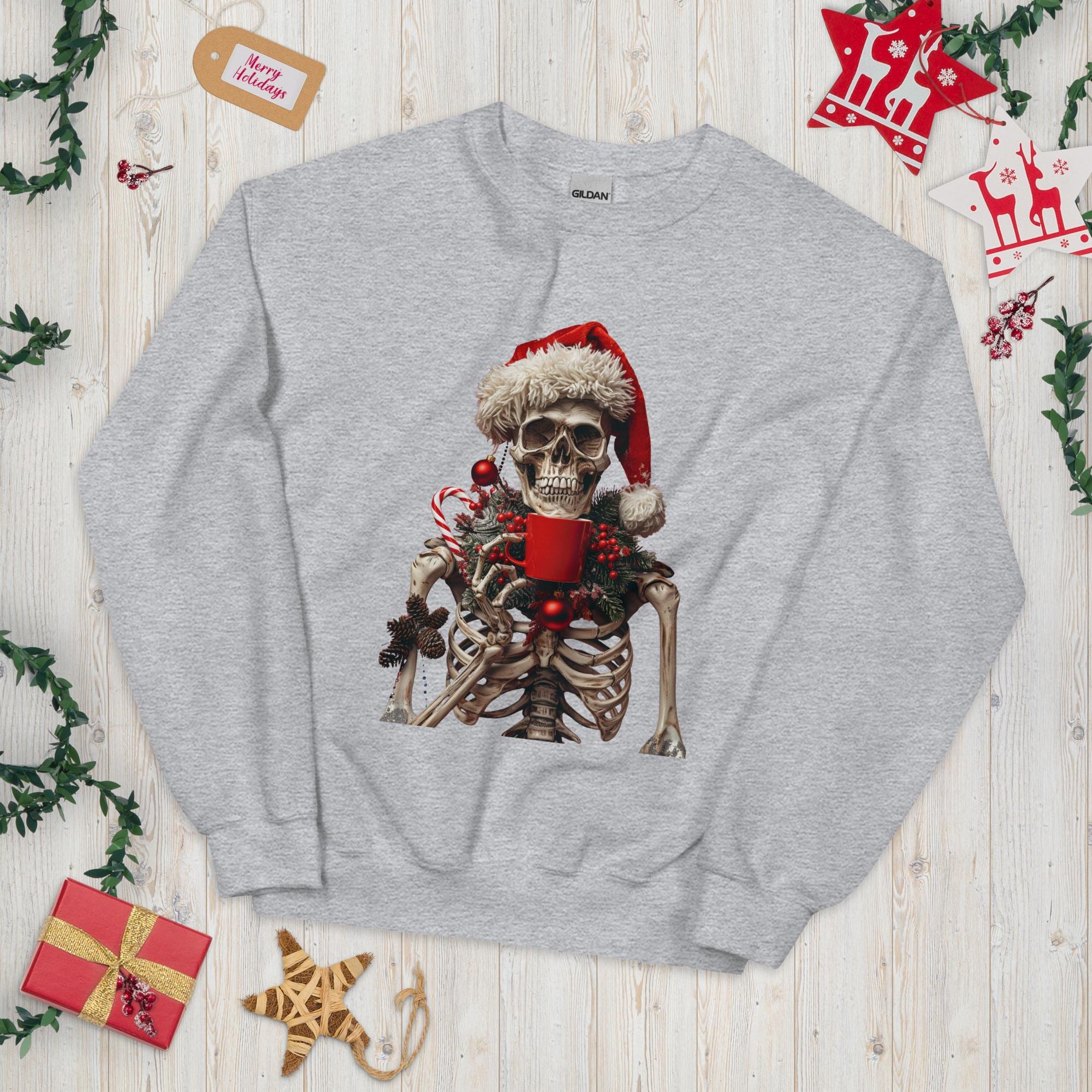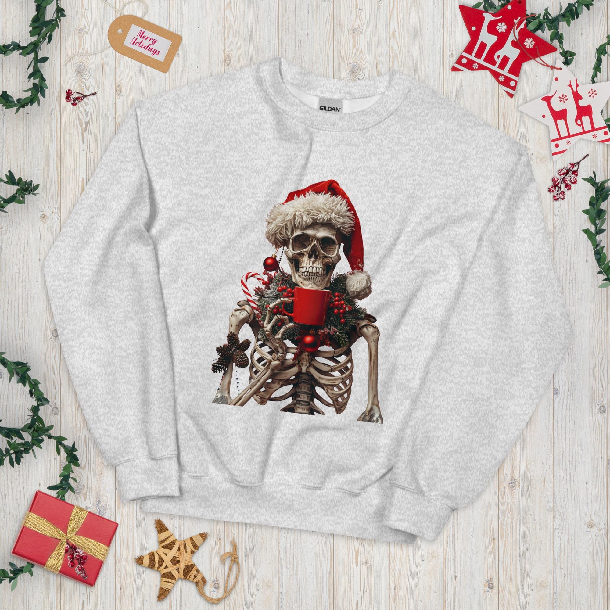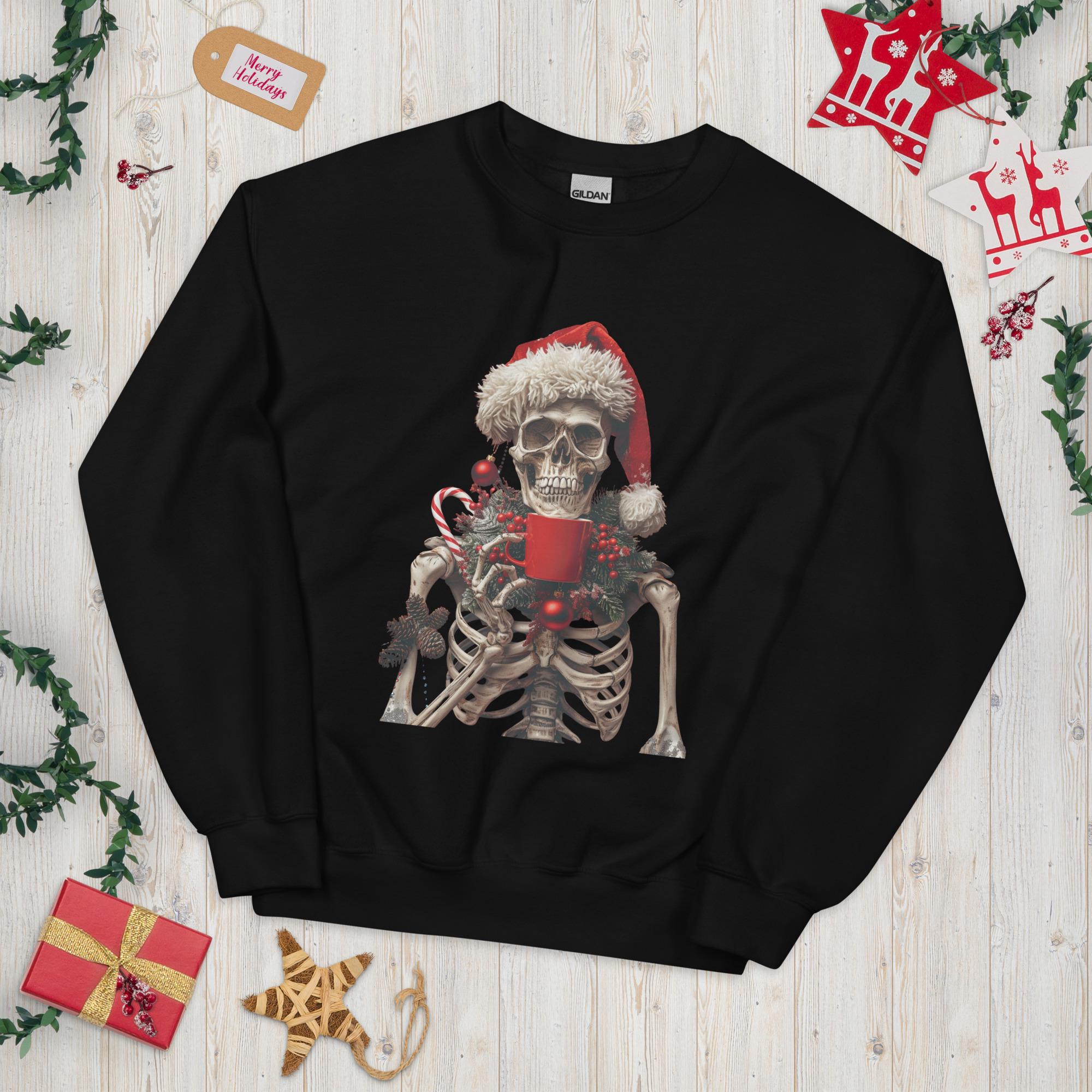 Unisex Sweatshirt, Ugly Sweater, Christmas Sweater, Sweater Gift, Skeleton Sweater, Coffee Lover